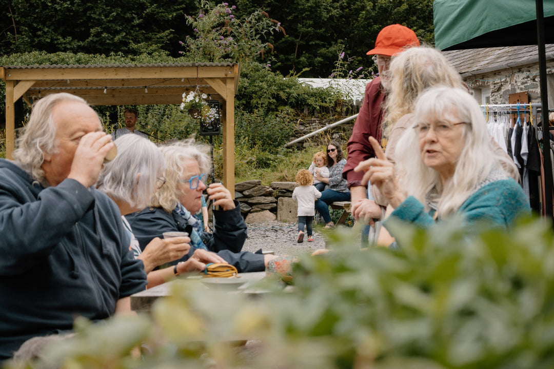 Yn yr haf rydym yn agor ein drysau ar ddydd Sadwrn fel caffi. Mae’n gyfle i ni fynd tu ôl i'r peiriant coffi, rhoi ein sylw llawn i chi a sipian coffi drwy’r dydd yn ein cwrt hardd (sy’n dal yr haul yn hyfryd gyda llaw).