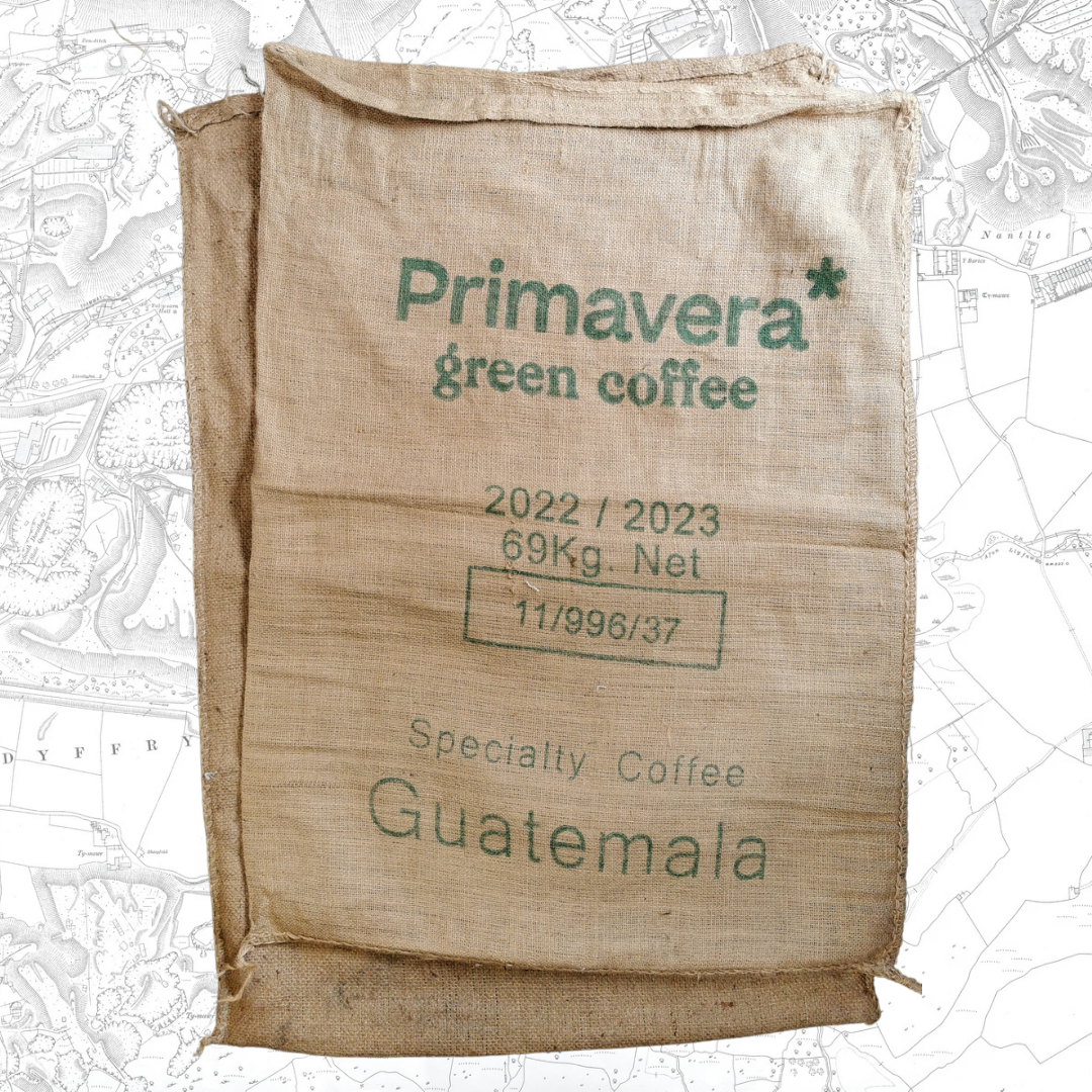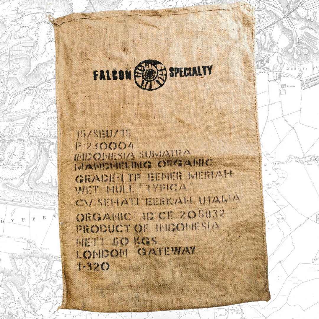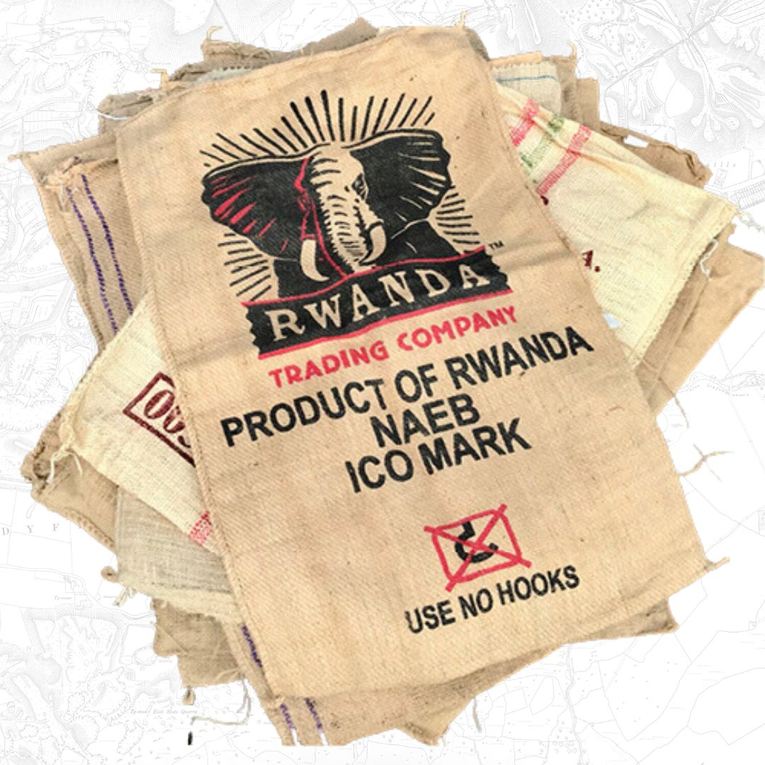 x2 Sach Goffi Hessiwan wedi eu defnyddio.