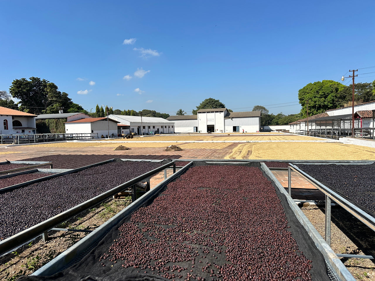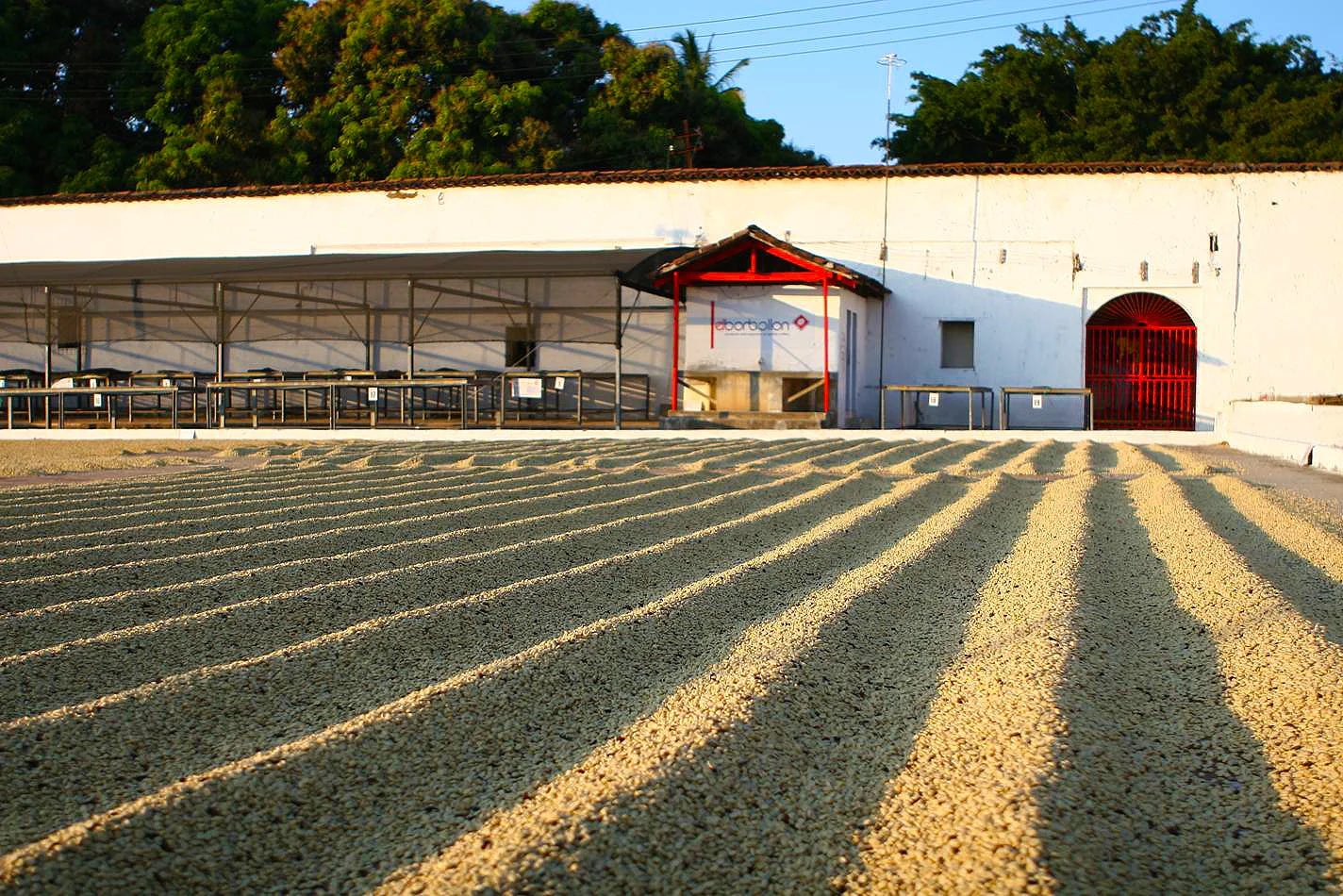 Ar ôl eu heplesu caiff y ffa eu symud i beiriant golchi lle defnyddir dŵr croyw i gael gwared ar unrhyw fwcilag sy'n weddill a pharatoi'r ffa ar gyfer y patios sychu. Caiff yr holl ddŵr ei ailgylchu a'i ddefnyddio i symud ceirios ffres o amgylch y felin wlyb. Yna caiff y ffa eu cludo i'r patios sychu a'u cadw ar wahân fesul lot. Byddant yn sychu yno am tua 8-10 diwrnod, er bod El Borbollon yn arbrofi gydag ymestyn cyfnodau sychu trwy osod y ffa yn drwchus a'u gorchuddio am rannau o'r dydd. Credir y bydd ymestyn yr amser sychu yn arwain at naws fwy cymhleth yn y cwpan.