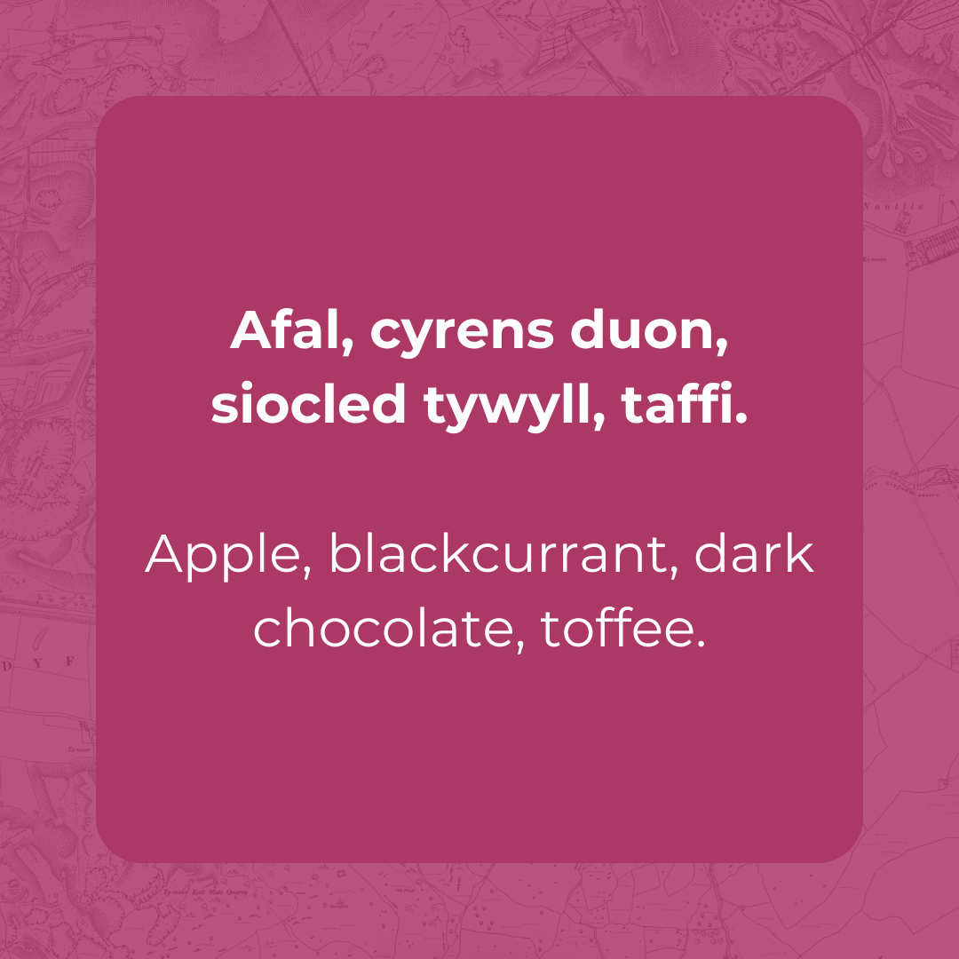 Apple, blackcurrant, dark chocolate, toffee.